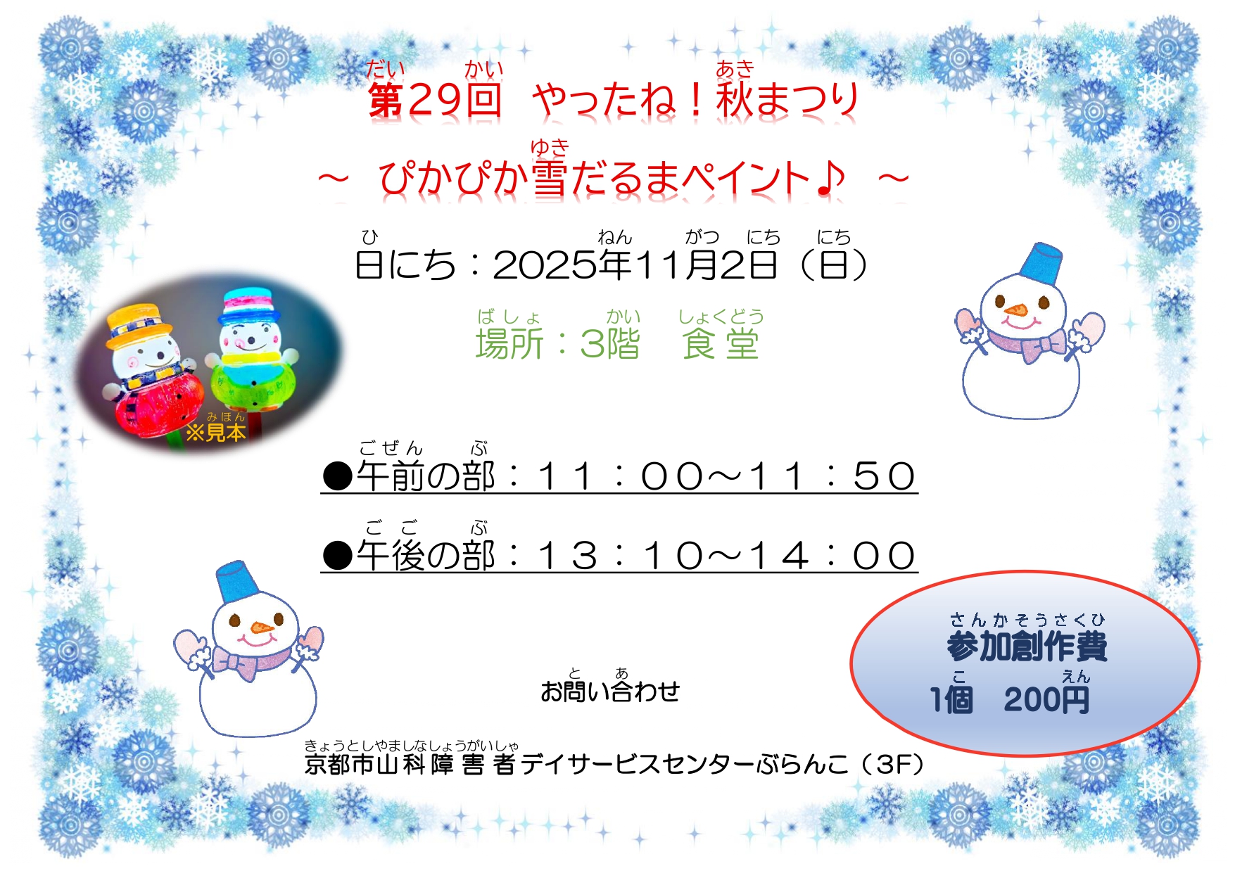 • 第29回 やったね!秋まつり ぶらんこのワークショップ開催が決定しました!みなさまのご来場お待ちしております!